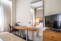 Anatomic mattresses, Closet, Electronic locks, Individually Controlled Air Condition, Central heating, Soundproof Windows and shutters, Wi-Fi Internet Access (free of charge), Flat screen TV with satellite channels, Direct telephone line, Safe- deposit box, Room service, Kettle, Refrigerator, which upon request can be fully supplied with drinks and snacks (Mini bar), Bathroom with Bathtub or Shower, Bath Amenities, Slippers, Hairdryer, Daily Maid Service, Wake-up Call, Laundry, ironing and dry cleaning service.